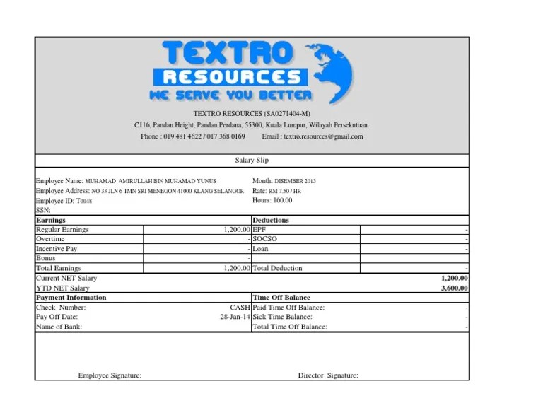 Total jumlah authorized by di sahkan oleh received by diterima oleh . Pendapatan rm gaji pokok elaun kedatangan elaun . Berikut adalah contoh template slip gaji guna excel:.